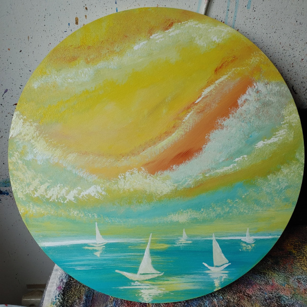 text zadání pro AI: obraz artistmilicz. s názvem letní loďky jako předloha, abstrakce, namaluj 4 obrazy.