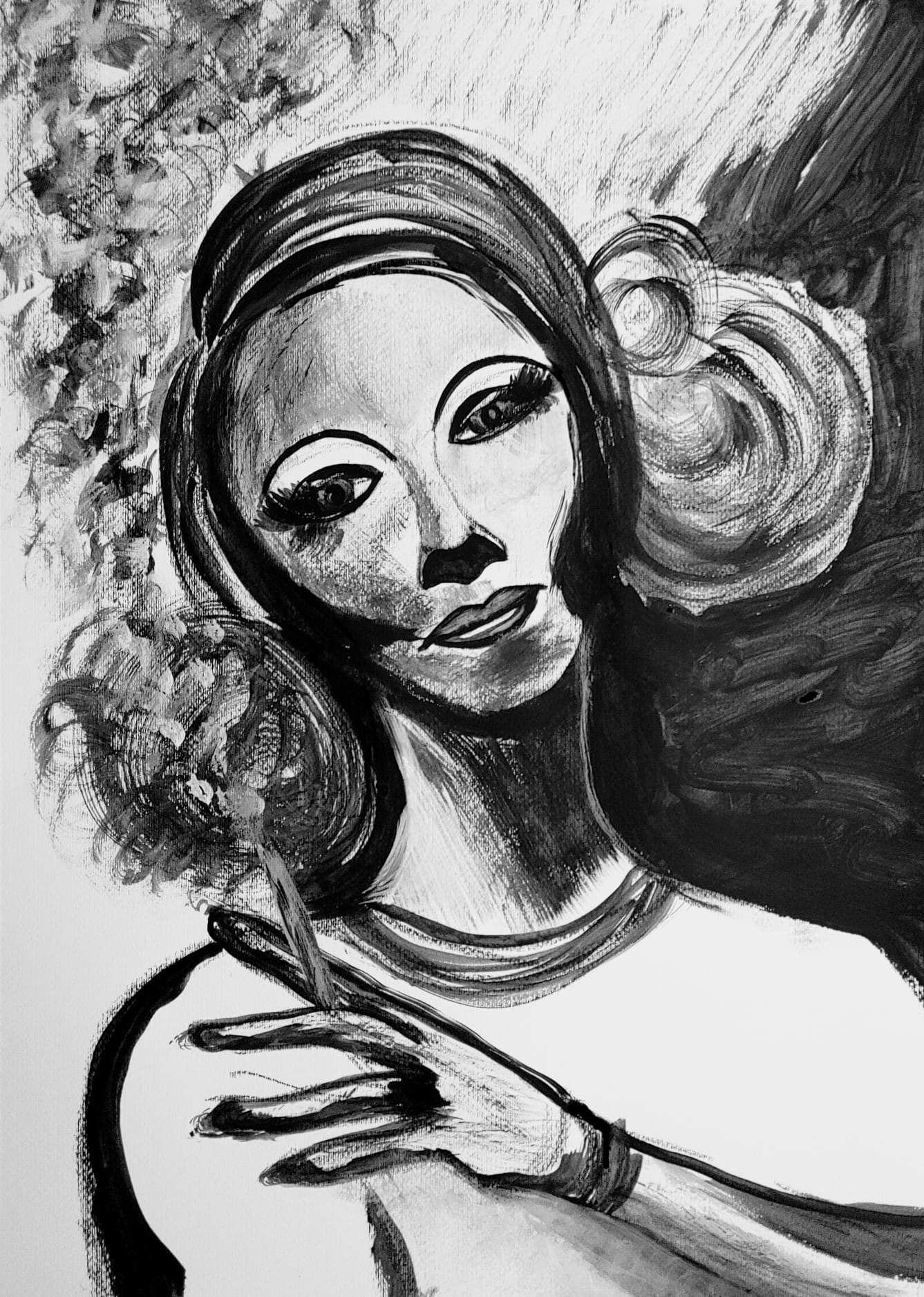 Obraz druhý. Z palety jsem vybral barvu černou a její světlejší odstíny. Motiv obrazu pro tuto minisérii zůstává žena.