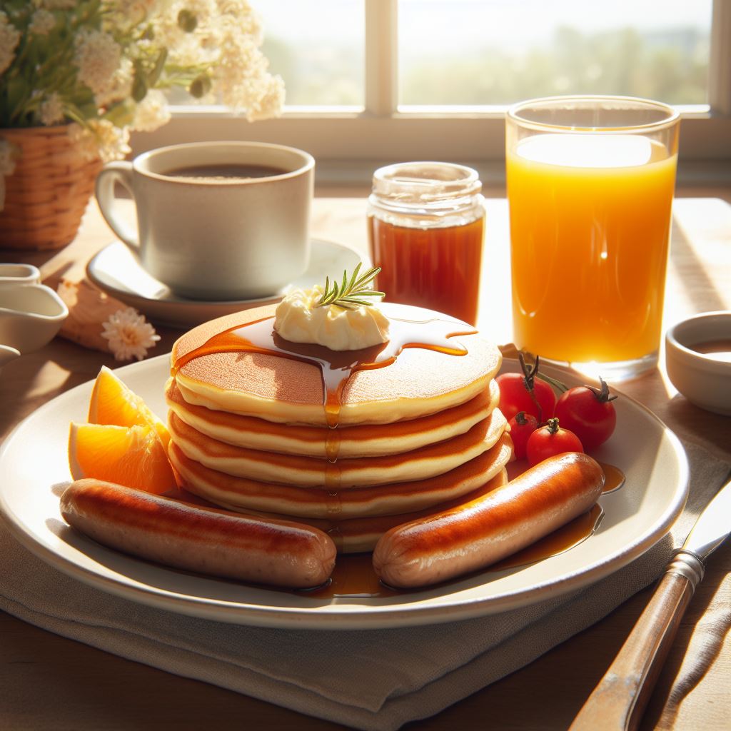 Pokud chceme být zdraví, měli bychom si vybrat jedno z nich a doplnit je zdravějšími potravinami, jako je ovoce, zelenina nebo jogurt. Pokud chceme být šťastní, měli bychom si vybrat to jídlo, které nám nejvíc vyhovuje, a užít si ho bez výčitek. Pokud chceme být kreativní, můžeme si vytvořit snídaňový talíř s párky a palačinkami pomocí umělé inteligence. Podívejte se na obrázek, jak jsem to vyřešil.