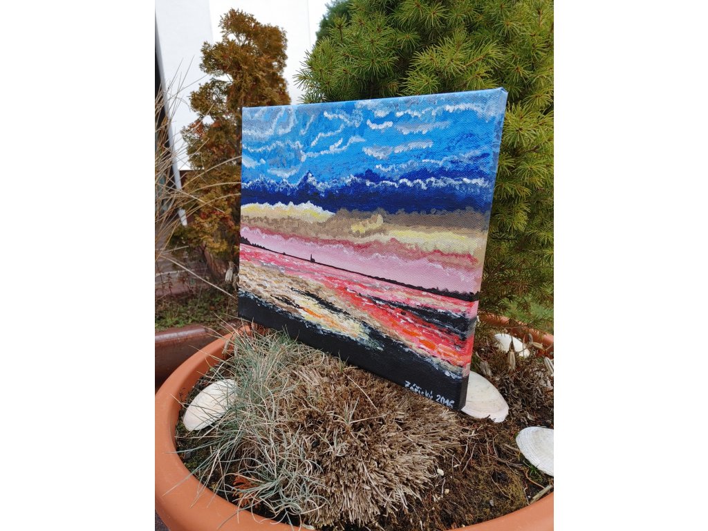 Originální krajinka plná barev a detailů je namalovaná akrylovými barvami, malba z roku 2016