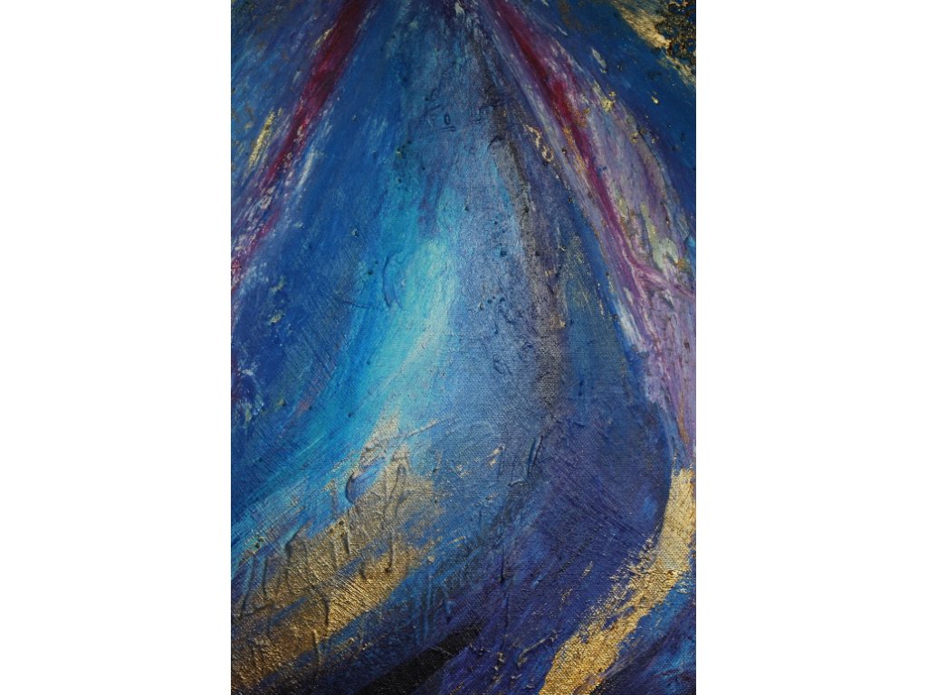 Moderní obraz s modrou kompozicí zlomu, co se asi odehrálo, co asi přišlo?